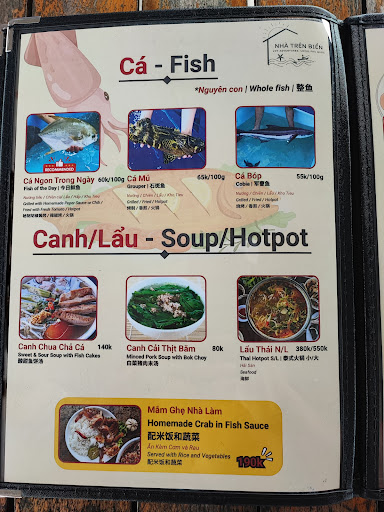 Một ngôi nhà nằm giữa biển (ở biển hay gọi là nhà bè), với xung quanh là hải sản nên tất nhiên khi ghé chơi nhà bạn sẽ được:
